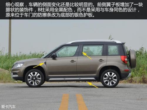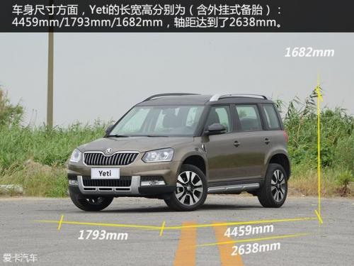 进入国内市场后,相对进口车型,Yeti有了一定程度的加长,车身长度从4223mm加长至4459mm;轴距为2638,在改变目标定位而针对小型SUV市场后,其身材颇具优势。