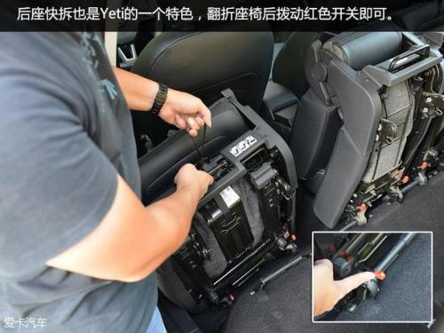 储物空间同样是Yeti的一个强项,灵活多变的储物空间同级别中几乎没有对手,整个后备箱设计的非常规整,日常使用已经能满足不少家庭的需求,由于选装了外挂式备胎,造成后备箱底板位置更低,存放能力也进一步增加;此外,你还可以通过翻折第二排座椅进一步提升储物,还觉得不能满足需求的话,那干脆拆卸取出第二排座椅。