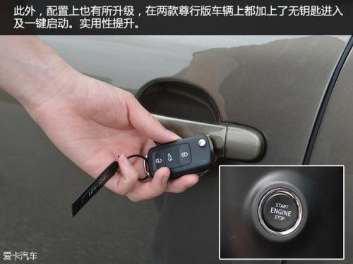 内饰的变化更多体现在配置上,如在尊行版的车辆上配备了无钥匙进入及一键启动功能,大大增加了实用性和车辆的档次,并配有自动防眩目内后视镜,空调系统方面,车辆配备了双区自动空调,并带有空气净化功能,值得称赞。