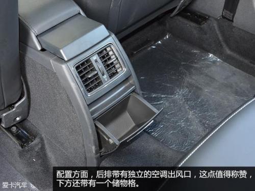 后排的空调表现也非常出色,头部以及腿部所剩余的空间基本满足大部分家庭的需求了。座椅不仅可以前后调节,靠背角度也可调,能让不同身材的家庭成员找到一个较为舒适的坐姿。后排中间带有空调出风口,提升档次,中间座位在不使用时可以放倒作为扶手,且配有杯架提升实用性。