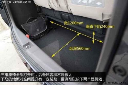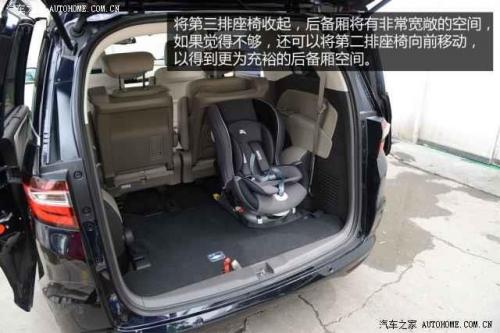 全新奥德赛的后备厢空间在三排座椅都有乘客的时候不是很大,纵深只有560mm的样子,如果每一位乘客都有行李的话,会显得捉襟见肘。但如果只有前两排的乘客,那么后备厢的空间则是非常足够的。