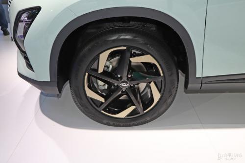 实拍车型上搭载的是18寸熏黑高亮撞色运动,与之匹配的是马牌的UC6 SUV轮胎,尺寸为215/55 R18,兼顾运动性能和舒适性。