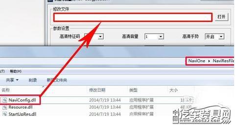 4、打开下载好的凯立德车载导航主程序,同上面一样,依次打开Navione→NaviResFile,找到NaviConfig.dll文件,拖到luchang_diy里,将高清端口里的数据修改为刚才记的数据。