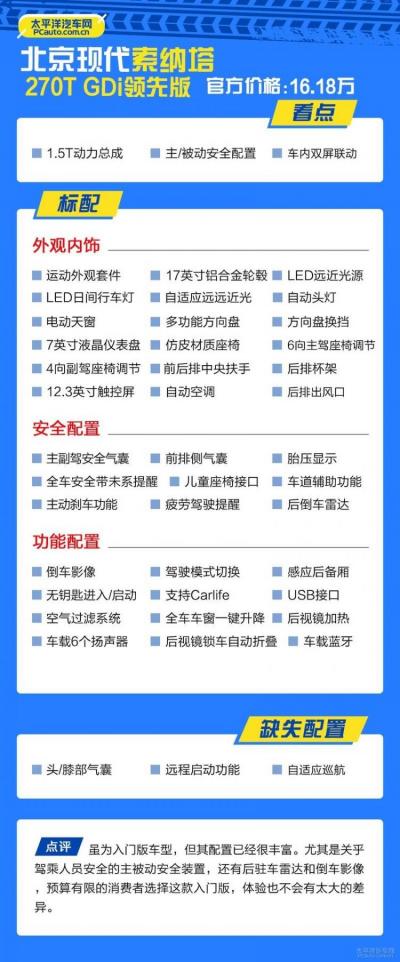 作为一款国内消费者熟知的车型,索纳塔至今也走过了35个年头,从第五代车型开始引入国内,最新一代索纳塔也于7月22日完成国内上市。第十代索纳塔的官方指导价为16.18-20.58万元,此次共推出五款车型,提供了1.5T 7DCT、2.0T 8AT两套动力总成。