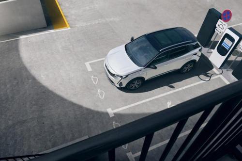 PHEV,顾名思义就是插电式混合动力,在3008的底盘后部有一套13.2kWh的锂电池,可以支持纯电行驶50km左右。充电方面有两种模式,一个是标准的3.7kW慢充,另外可以选配7.4kW的快充,最快1小时45分钟可完全充满,实现纯电通勤。