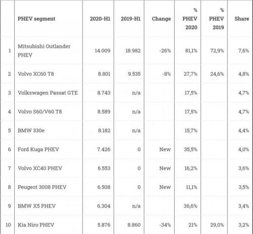 2020年H1欧洲所有PHEV SUV销量表TOP 10