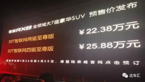 中国汽车新闻网讯荣威RX8对于我们来说,并不算陌生。早在春节前,荣威R8就在张家口崇礼进行亮相,并成功挑战了崇礼太舞雪场Moguls雪道,顺利攀上32°的极限雪坡。 3月22日晚间,荣威RX8在张家口崇礼太舞滑雪场成功挑战华尔兹雪道。与此同时,上汽乘用车公司副总经理俞经民公布了荣威RX8的两款顶配车型的预售价。