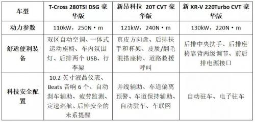 在小型SUV市场,T-Cross的竞争对手有很多。比如前不久上市的新昂科拉、新XR-V都是T-Cross的竞争对手。