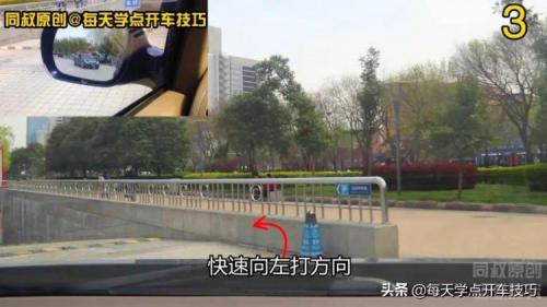 所以需要有意识地向右打一下方向,把右前方空间用足的情况下,快速向左打方向,