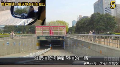 像这种地下车库的下坡多数都有一定的陡峭度,我通常是在前轮开始下坡之前就把档位切换到M档的一档,这样无论坡道长短,我只需在听到发动机噪音加大车速变快的时候稍微点点刹车就可以了,如果继续使用D档就需要在整个下坡路段一直踩着刹车。