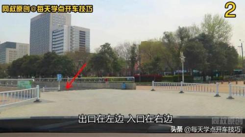 完成右转随即左转走一个S线前面就是地下车库出入口,出口在左边,入口在右边,为了避免与出口车辆互相影响,同时也防止向左拐弯太早,导致左侧车身刮蹭中间护栏起点,