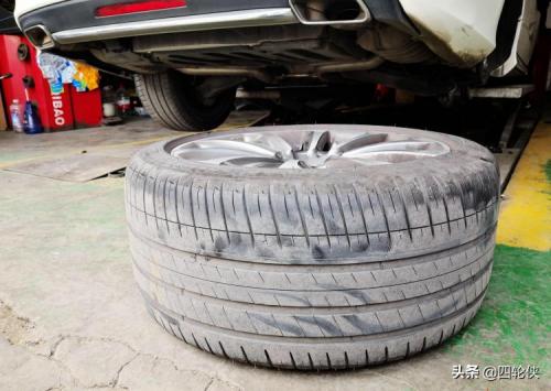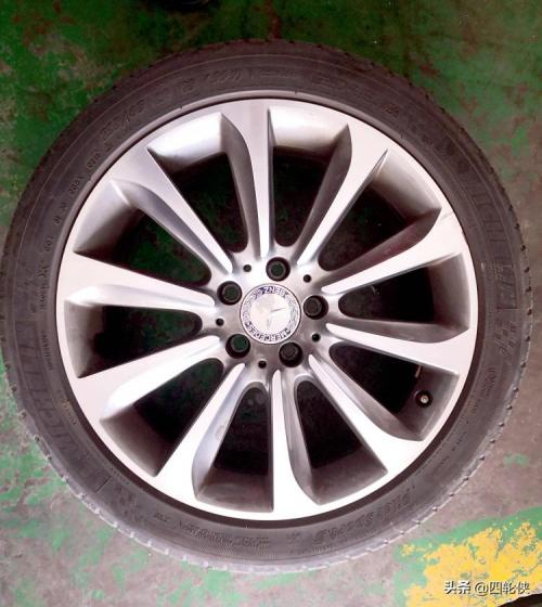 解决完了手刹的问题,我们还要对这辆车进行检查与保养。首先我们检查了轮胎,四条轮胎磨损情况适中,还可以继续使用。这辆奔驰CLS的原车轮胎是米其林竞驰3代(pilot sport 3),单条价格2000元以上,前后轮胎的尺寸不一样,分别是255/40R18和285/35R18。类似CLS这种前后轮胎尺寸不同的车,日常保养时用不着像其他车辆一样前后或者交叉倒轮,到了使用寿命直接更换就可以了。