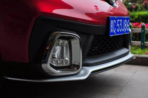 前雾灯的面积很大,周围还有一圈粗壮的镀铬饰条,初看的时候注意力都被这副硕大的雾灯给吸引了。作为一款SUV,AX4竟然原厂就配备了类似于运动车型上的前铲,看起来很独特,不过接近角也随之变小了。