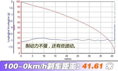 随着时代的进步,车辆设计及制造工艺在不断提升,如今新款汽车产品的刹车性能相比多年前已经有了整体性的强化,为了对新产品刹车能力进行更科学合理的评判,我们综合目前评测中心已经测试过的848款车辆刹车成绩,重新制定了汽车之家汽车性能测试刹车性能的优秀、合格、差划分标准,自2015年4月1日起启用:100-0km/h刹车成绩,小于等于39米为优秀,大于39米、小于等于44米为合格,大于44米为差。