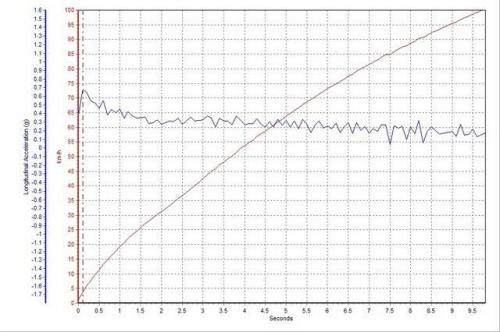 2.5L自然吸气发动机动力表现十分平顺,起步阶段就达到了最大加速G值,最终以9.7s的成绩完成0-100km/h的加速,这样的成绩对于这一级别的SUV车型而言还是可以接受的。