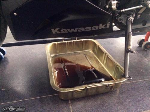 经过一个春天的磨合不少车友的摩托车都到了保养的时候,对于热爱跑山的同学更是不能忽略基础保养,给爱驹吃点好“饲料”还是必须的。尤其是对于排气量较大的摩托车,比如这辆川崎ZX-6R,并列4缸高转速发动机600多毫升的排气量,对机油的要求就更高了,首先这类跑车的发动机温度会很高,所以对机油抗热衰减的能力要强,其次对于“老鸟”的驾驶风格来说,长时间的高转速运行,机油的使用寿命也相对会缩短,但是咱们又不是跑赛道的也不至于一场比赛下来就把机油换掉,不过保养周期还是要把握好,这可是爱车的“心脏”开不得玩笑的。