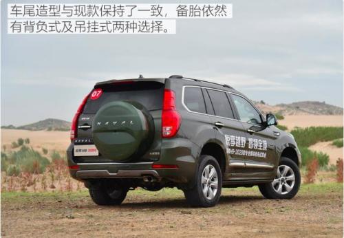 2020款哈佛H9车身长宽高分别为4856x1926x1900mm,轴距2800mm,最小离地间隙是206mm,不算太高,不过也依然搭载了电动踏板,方便乘客上下车;这款车采用了规格为265/60R18的轮胎,个人觉得如果用户要买了这台车经常去越野的话,第一件事情建议你换成全地形胎。这款车不管是侧面还是尾部都依旧延续了之前那款的造型设计,线条非常方正、有型。设计变化也不大,尾部同样有一个“小书包”,除了背负式备胎以外,也有吊挂式备胎可以选择。