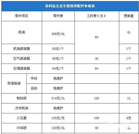 昂科拉的保养费用在同级里面算是比较厚道的,也许算是给爱小车也爱低价的人群一个小小的补偿?