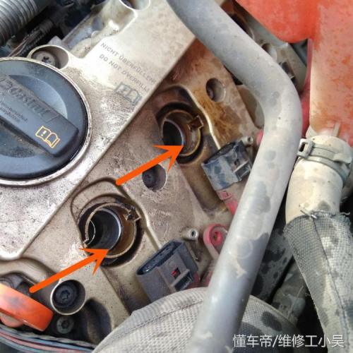 下图所示,这就是气门室盖漏油的一个位置,这里渗漏的机油就会造成点火线圈以及火花塞上面有很多机油!长时间不解决的话,容易导致火花塞和点火线圈出现问题。