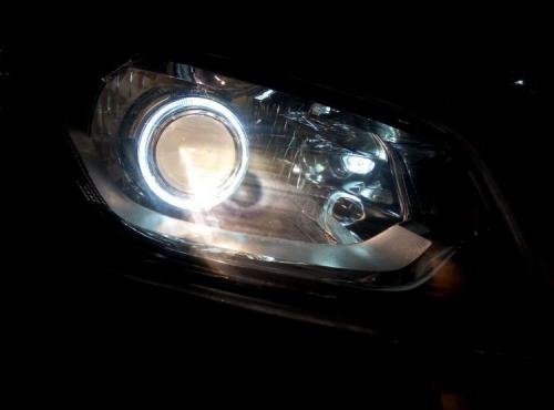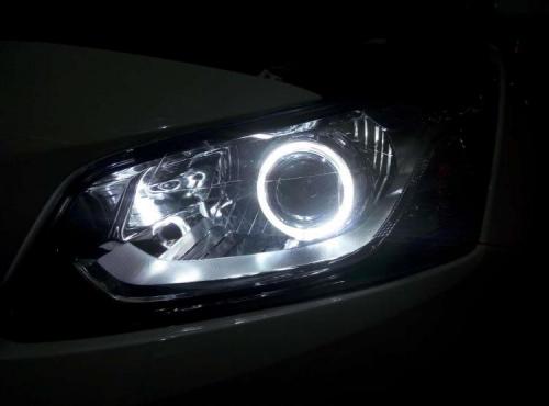 在雾灯位置加装雾灯透镜,然后加装黄金眼,这样出来的效果会更加明显,雨天能保证雾灯照射地更远。