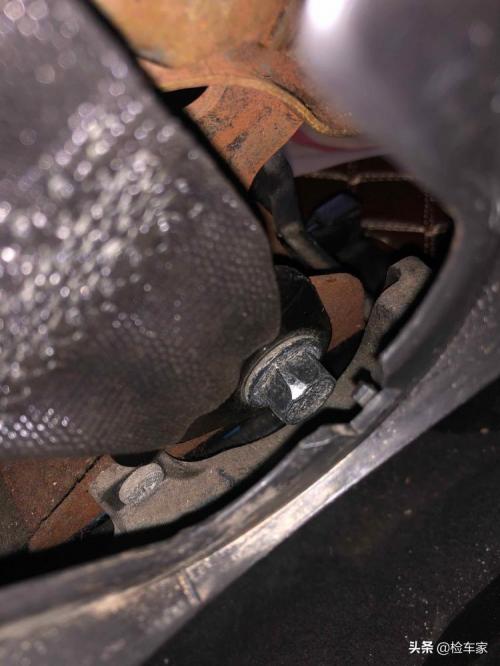 当我钻进驾驶舱踏板位置往上看的时候发现了些问题,转向管柱以及制动泵支架有大量的锈渍,按正常来说10年的车到现在多多少少会有锈渍,但是不应该有这么严重。