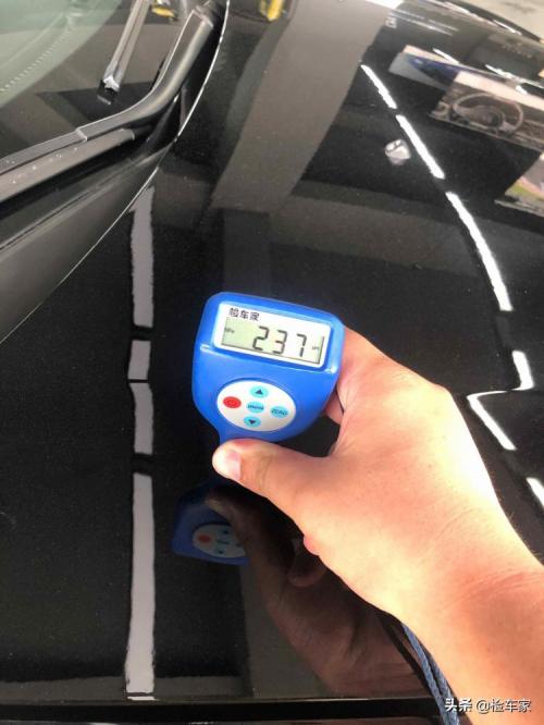 漆面检查从机盖开始,机盖数值为237um,数值偏高,用手摸了摸边缘有残漆发涩的感觉,应该是有过喷漆修复了,先记在小本本上,待会结合相关情况再具体分析原因~