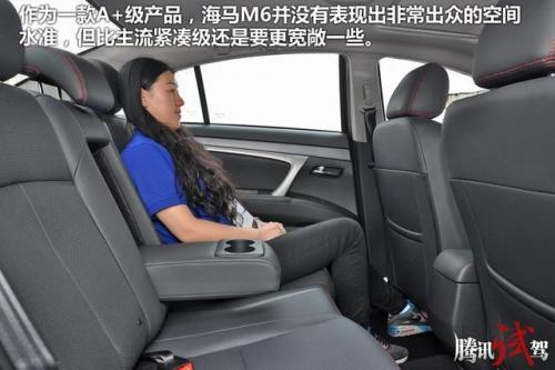 作为一款A级产品,海马M6并没有表现出非常出众的空间水准,但比主流紧凑级还是要更宽敞一些,超过2米7的轴距,足以让一个正常身高的男性舒适乘坐了。相对来说,后排座椅的舒适度更高,前排座椅还需要更多人性化考量,有效坐垫短小,角度欠佳。整体来说,座椅材质比较优秀,人机工程学稍显不足。