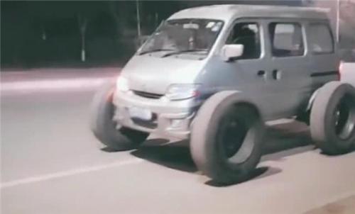 同时根据小编了解,这是一款2009年的长安之星,它的价格估计在2万块钱左右,虽然是一款面包车,但是这款车由于性价比比较高空间比较大,所以也受到了不少小老板的喜爱,而且最重要的是这款车搭载的是1.0L的自然吸气发动机,在马力方面来说还是比较充足的,但是谁又能够想到,就是这么一款简单的面包车竟然被车主给直接改装了,并且还安装上了4个大轮子。