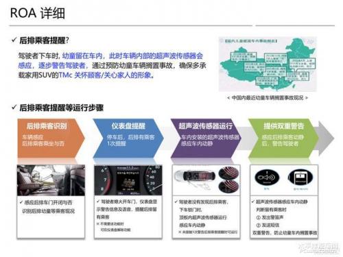 这个对于现代社会的应用是很有帮助的,我们常常在报道中看到由于父母发粗心将小孩子遗留在车内,这种情况下,如果发现的晚,那么甚至有可能造成“高温致死”。(其实这一情况,并不仅仅见于父母遗留孩子在车上,还有一些是宠物被遗留在车上)“ROA后排乘客提醒”的存在能够在很大程度上帮助我们规避这种情况的发生。