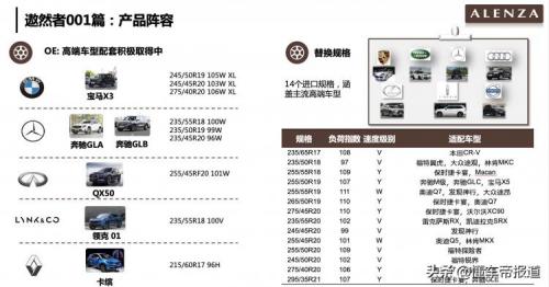 遨然者001系列是针对高端SUV车型所开发的一款轮胎,从2018年发布以来已经成为了宝马、奔驰、英菲尼迪等车型的配套轮胎。此次遨然者001一共推出了14个规格的替换轮胎,将会覆盖市面上绝大多数高端SUV车型。