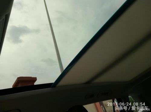 全景天窗很嗨,几乎每个做上车的人都会赞叹。只是天窗下的遮阳帘太薄,遮阳隔热效果欠佳。