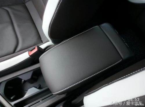 扶手箱也是真皮包裹,在外加双色缝线。