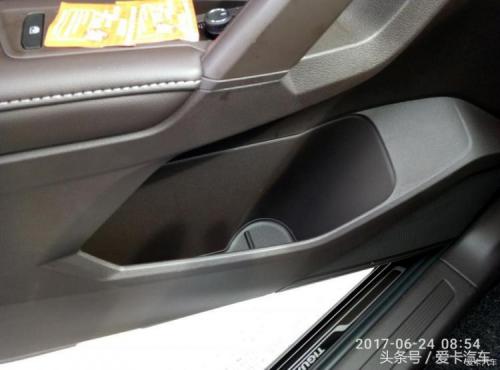 车门的杯架只能放一瓶水,后边太窄了。
