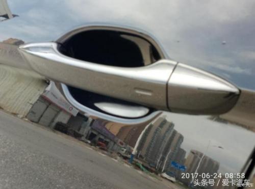 小凹槽是无钥匙进入的感应点,按着拉门就可以打开车门了。