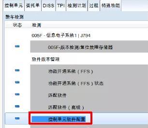 登陆ODIS系统,启用诊断并勾选“引导性故障查询”选择“特殊功能→控制单元软件配置→ 1.软件配置(通过诊断地址)”,对诊断地址“09-电子中央电气系统”执行配置(即参数化)。