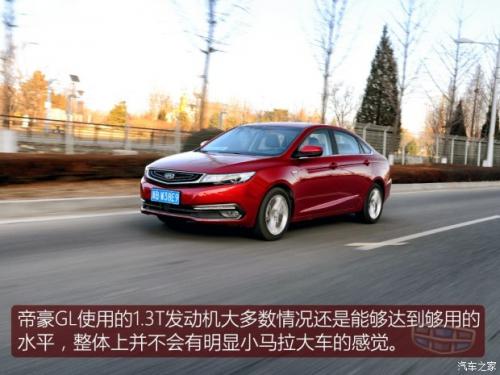 动力方面,帝豪GL有1.8L自然吸气和1.3T涡轮增压两种发动机,今天拿到的这辆是搭载了1.3T涡轮增压发动机的车型。近几年,小排量增压发动机飞速发展,而且覆盖面越来越广,排量更是越来越小,现在已经有很多1.0T发动机应用到紧凑型车上了。相信大家更为关心的肯定是1.3T这个车型,所以我们也自然要先来试试这款车了。