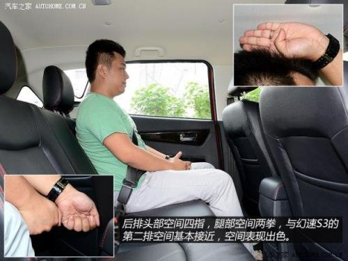 同样是身高175cm的体验者,将幻速S2的前排座椅调至最低,头部空间能够达到1拳,移至后排则有四指的头部空间以及两拳的腿部空间。相比同级别车型,这样的空间表现绝对称得上是优秀。