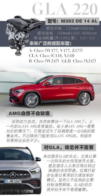 而如果没有过大的意外的话,全新GLA投入国产后将会沿用A级三厢和GLB的1.3T四缸涡轮增压发动机。虽然排量比现款要小了不少、但根据笔者之前体验的A级三厢车型来看,动力方面应该不用特别担心,何况它还保持了四缸的尊严呢。其实除了发动机、无论是双离合器变速箱还是高配车型会配置的4Matic四驱系统,对于GLA的目标客户来说并不重要。“SUV”“奔驰”“20万”这几个名词就足够令人买单了。