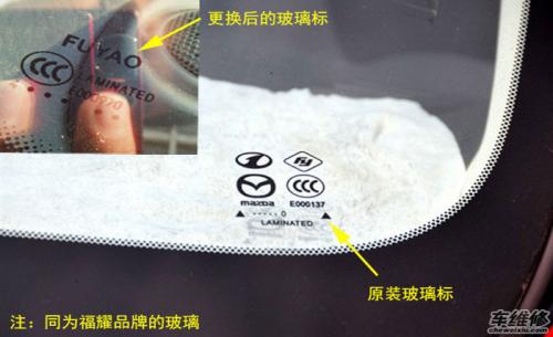 多数情况下,汽车玻璃在更换后,新玻璃上的标和原厂玻璃会有很大的不同。一般原厂玻璃标上不仅有汽车品牌的标识,还会有玻璃品牌的标识。由于汽车生产厂家的一些政策规定,导致在市面上零售的配套厂商禁止使用该汽车品牌商标。因此,在大多数后换的玻璃上只有玻璃品牌标而没有汽车品牌标。