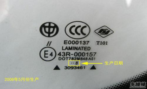 为什么要看生产日期?因为在正常情况下,全车玻璃的生产日期与整车生产日期接近,如果其中一块玻璃与其它玻璃生产日期差距较大,则说明该块玻璃被更换过。如果每块玻璃的生产日期都不一样,那么你就要小心了,翻过车的情况都有可能。汽车玻璃和轮胎类似,都有办法可以通过上边的一些数字能看出生产日期。但与轮胎不同的是,轮胎的计算日期单位是周,而汽车玻璃的是月份。