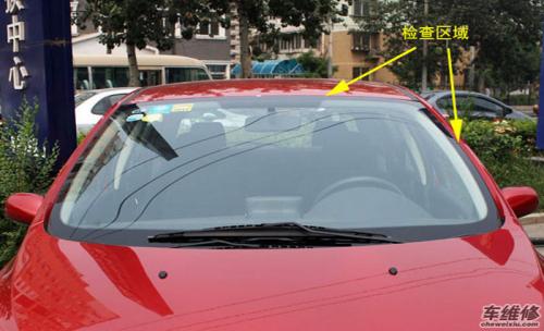 (2)检查玻璃与两边A柱的距离间隙是否一致。汽车在生产时是由机械人负责安装前/后风挡玻璃,因此两边的缝隙几乎完全一致。可后期更换是由人工操作,因此避免不了左右距离存在一定的误差。