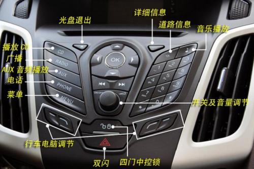 图片中的模型是新的Focus。目前,大多数型号的中控台上的按钮也很常用,右上角的TA按钮除外,该按钮用于在国外播放道路上的信息,但是在中国,该区域没有硬件支持。它只是一个显示器。其他CD,广播,电话,菜单等都很容易理解。
