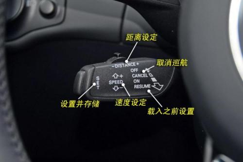 某些带有巡航控制功能的车型还将在方向盘后面增加一个操纵杆以进行设置和控制。当然,还有其他型号的控制按钮设置在方向盘或其他位置。图标是相似的。上图是基于Audi.example.example的。上下拨动杆设置巡航速度,“ DISTANCE”用于设置巡航距离,“ SET”键可以设置速度并存储,“ RESUME””可以调出以前存储的速度并以此速度巡航。“ CANCEL”是取消巡航。