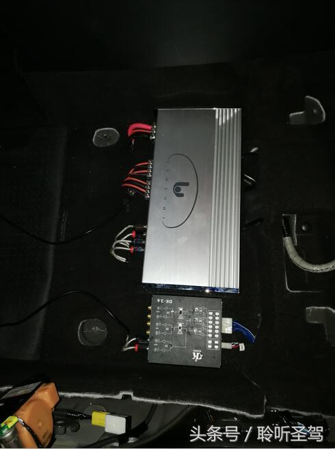两台功放分别放置在主副驾驶座椅下面,既不影响座椅移动又隐藏功放。