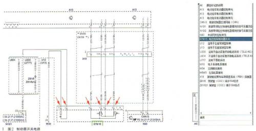 故障诊断:检查车辆时发现只要打开点火开关2挡或启动发动机仪表就报警“驻车制动器功能不可用”,操纵电子手刹开关时,驻车制动器无任何反应。