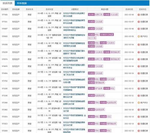 此外,还有车主向中国网汽车质量投诉平台投诉了奇骏车型的类似问题,表示自己的2014款奇骏在无任何显示故障码和征兆的前提下,在高速路上突然降速,且加油无力,变速箱不变档,险些发生交通事故。到4s店进行电脑检测后,发现变速箱阀体坏了,但屏幕一直没有出现任何故障码,该车主向记者表示:“(东风日产)厂家推诿不管,这是车辆严重的质量问题,用车安全得不到保证,极易发生交通事故!”并希望:“有关部门能给消费者讨个公道。”