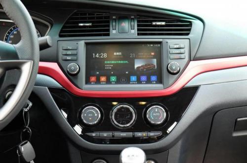 中控台采用了偏向驾驶员的设计,按键区域则被一条红色饰条划分为上下两部分,布局清晰合理,操作也比较直观。成本限制的关系,中控台表面都为硬塑料材质,但是装配工艺精致细腻,让人看起来还比较有格调。