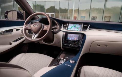 QX50车款全系标配为分区自动空调、全LED照明灯组、皮质座椅、换挡拨片、全景天窗、无钥匙进入/启动、自动驻车。