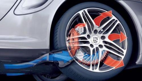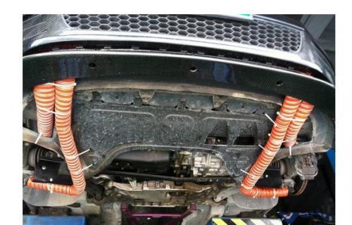 从车头保险杠下方导风到刹车碟处,加快刹车碟的散热其次是更换工作温度更高的刹车片