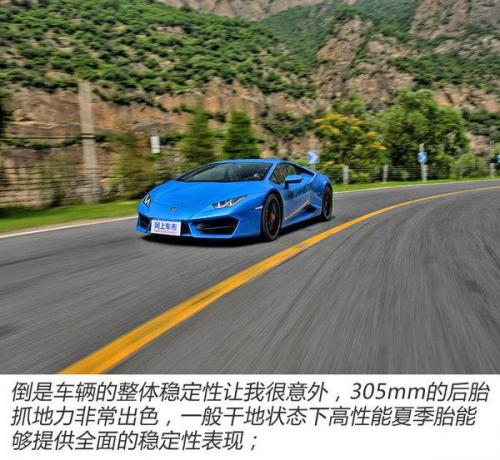 底盘的感觉,前面说了Huracan的驾驶感觉与Aventador S相比,就感觉像是一台入门级小跑车,在赛道生尤其明显,但在一般公路上很难开出极限,但灵活的身姿依然难以被磨灭,转向即使是在普通式下也偏重,如果是在CORSA模式下,驾驶了三十分钟感觉胳膊像是跑了两节卡丁车比赛那样沉重,前桥的反馈通过方向能够将所有信息传递给驾驶员,过低的轮胎扁平比以及硬邦邦的悬架系统,让车辆无时无刻都在神经质的情况下;